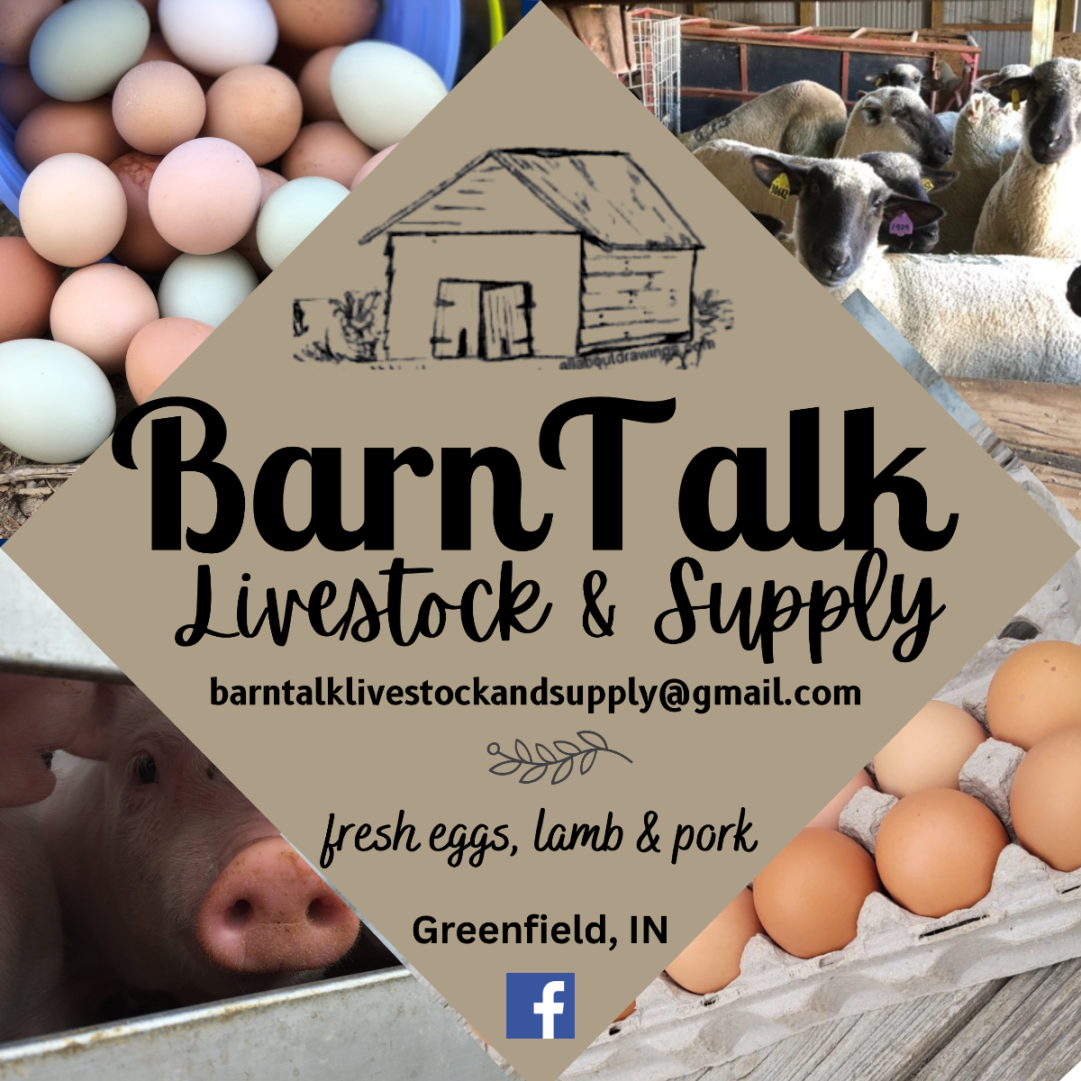 We offer farm fresh eggs, lamb and pork. Our five sons are fifth generation farmers from central Indiana.